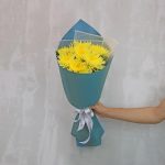 Букет из 11 желтых хризантем Анастасия в стильной упаковке