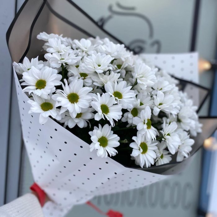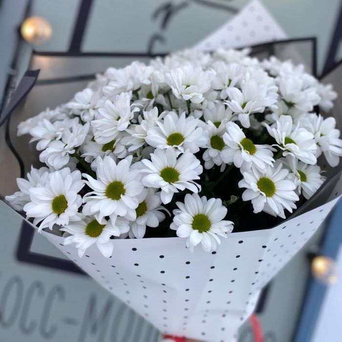 Букет из белой хризантемы "Раз-ромашка, даа- ромашка М»