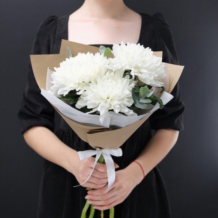 Хризантема – 3 шт.Эвкалипт – 1 шт.Упаковка – 1 шт.акваножка – 1 шт.