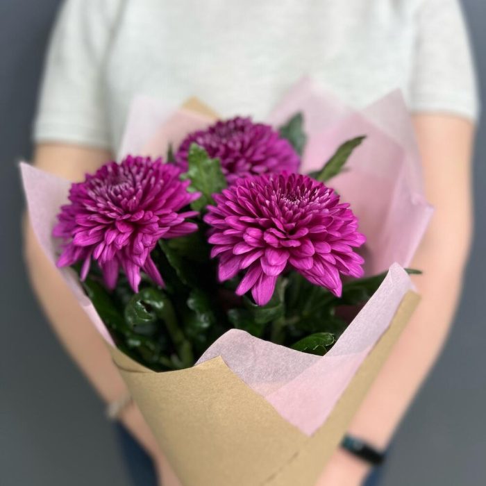Хризантема одноголовая – 3 шт.Крафт упаковка – 1 шт.