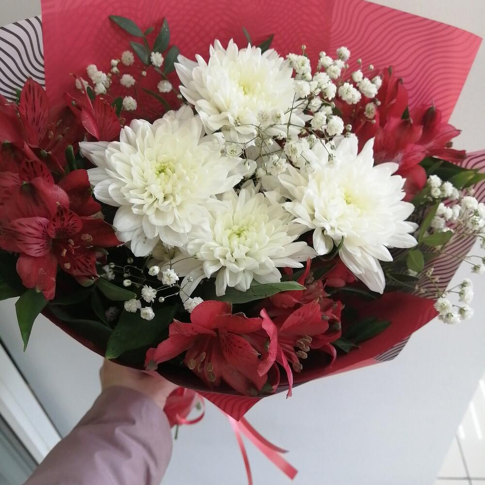 Букет из хризантемы и альстромерии