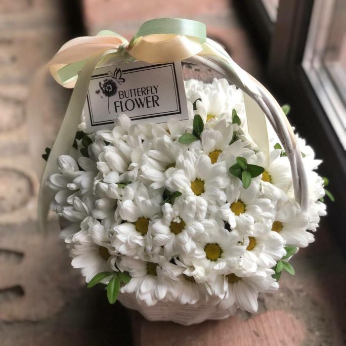 Корзина – 1 шт.Оазис – 1 шт.Фисташка – 1 шт.Хризантема кустовая – 5 шт.