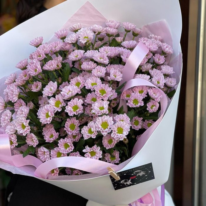 Лента – 3 шт.Хризантема Сантини – 15 шт.Упаковка дизайнерская – 1 шт.