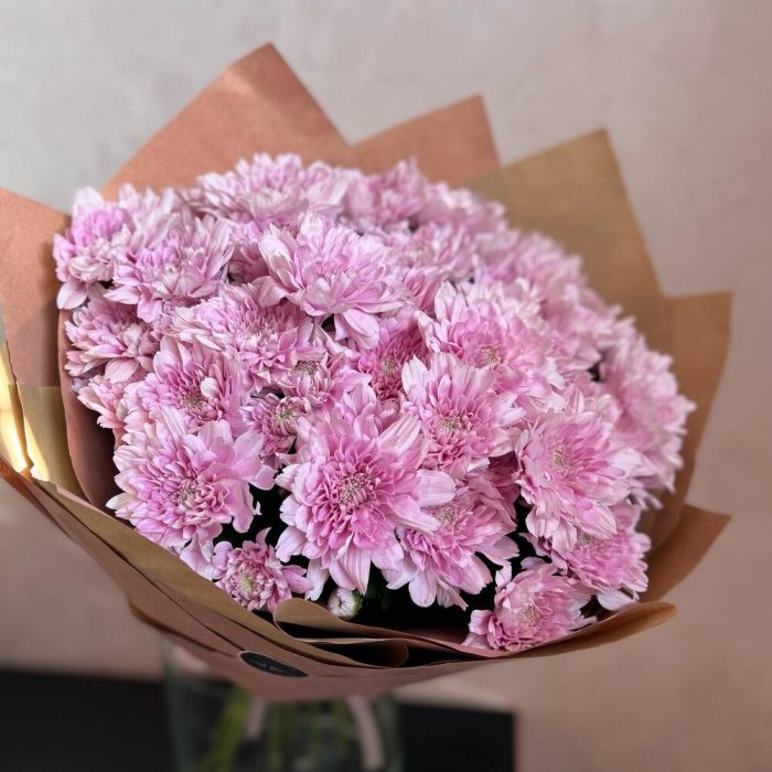 Кустовая хризантема – 11 шт.декоративная упаковка – 1 шт.Атласная лента – 1 шт.