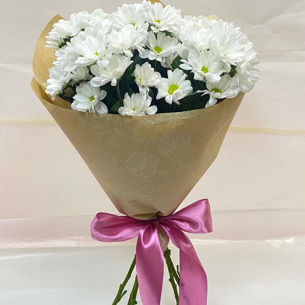 Хризантема кустовая – 7 шт.Упаковка – 1 шт.Лента атласная – 1 шт.