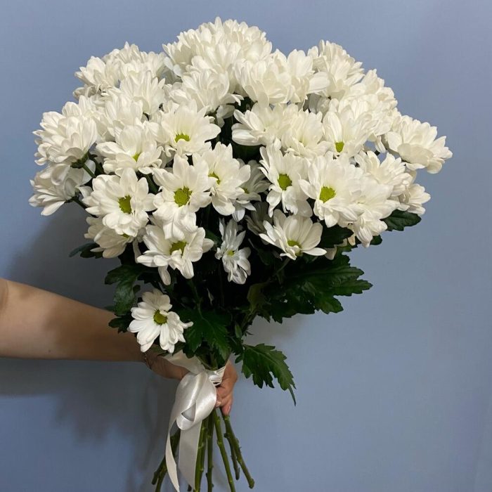 Лента атласная – 1 шт.ромашковая хризантема белая – 7 шт.