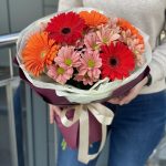 Хризантема – 4 шт. Гербера – 5 шт. Оформление – 1 шт.