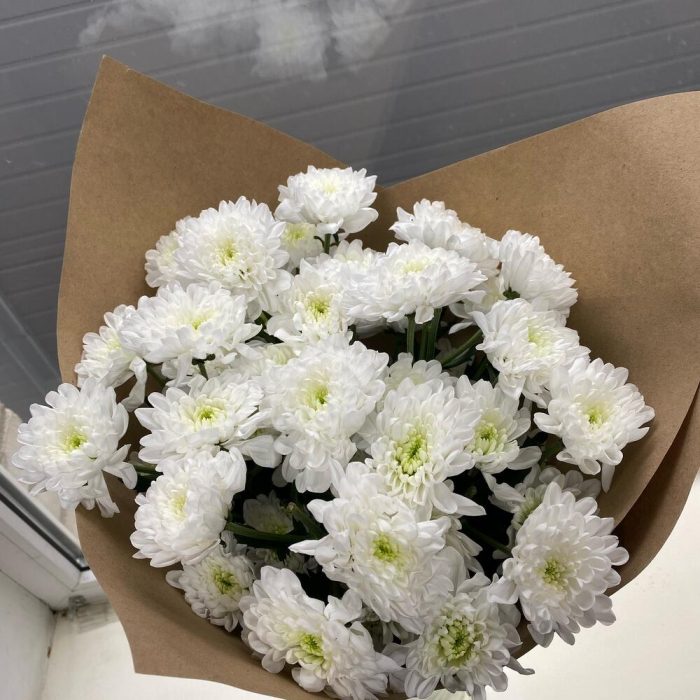 Хризантема кустовая – 5 шт.Крафт упаковка – 1 шт.веревка декоративная – 1 шт.