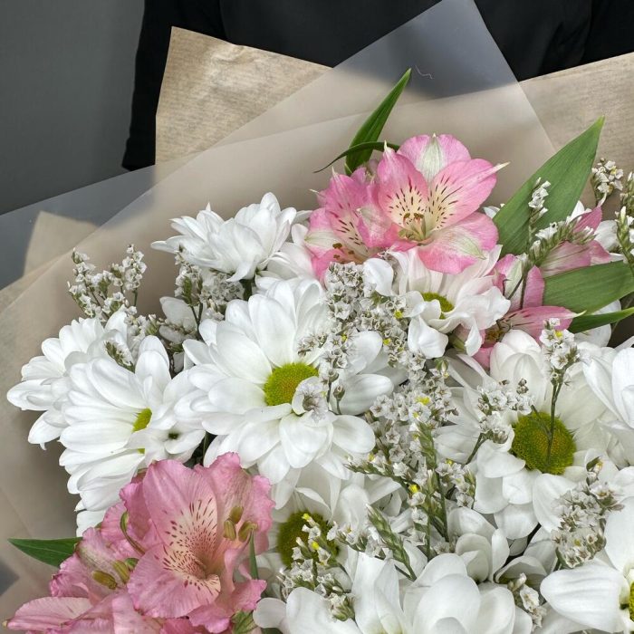 Букет ромашки, розовые альстромерии и лимониум. WISTERIA FLOWERS