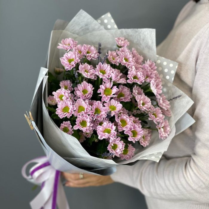 Букет с нежной кустовой хризантемой “Лавандовое лето”