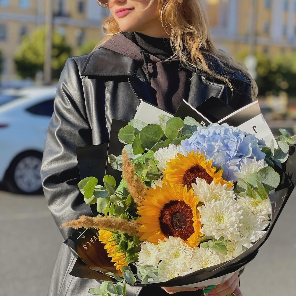 Категории: Гортензии, Подсолнухи, Сухоцвет, Хризантемы