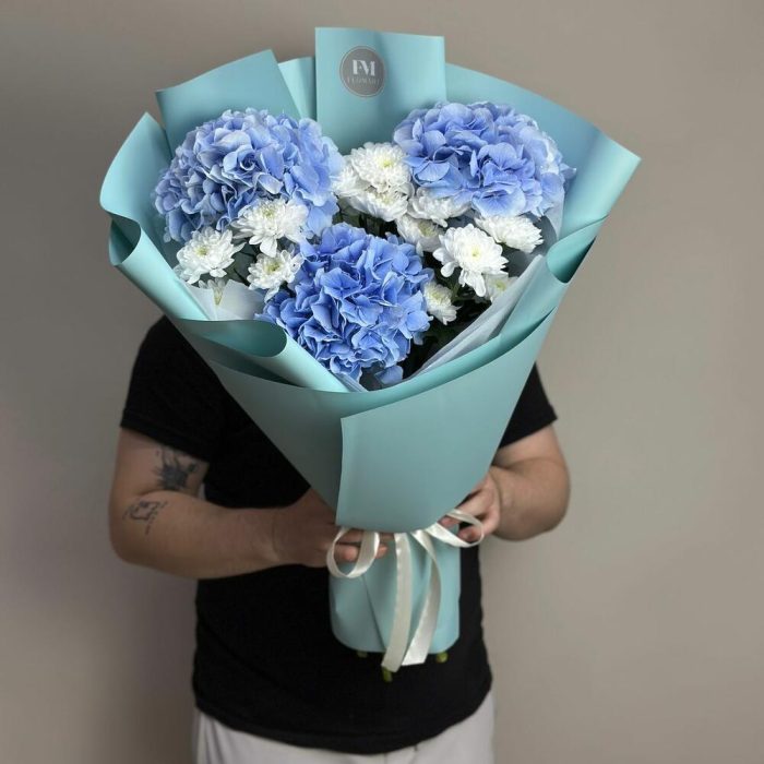 “Эвкалиптическая роскошь” гортензия и пионовидная кустовая роза