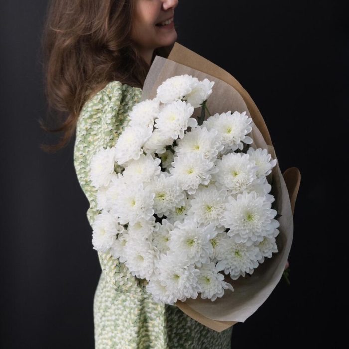 Хризантема кустовая – 7 шт.Крафт упаковка – 1 шт.подкормка для срезанных цветов – 1 шт.инструкция по уходу за цветами – 1 шт.