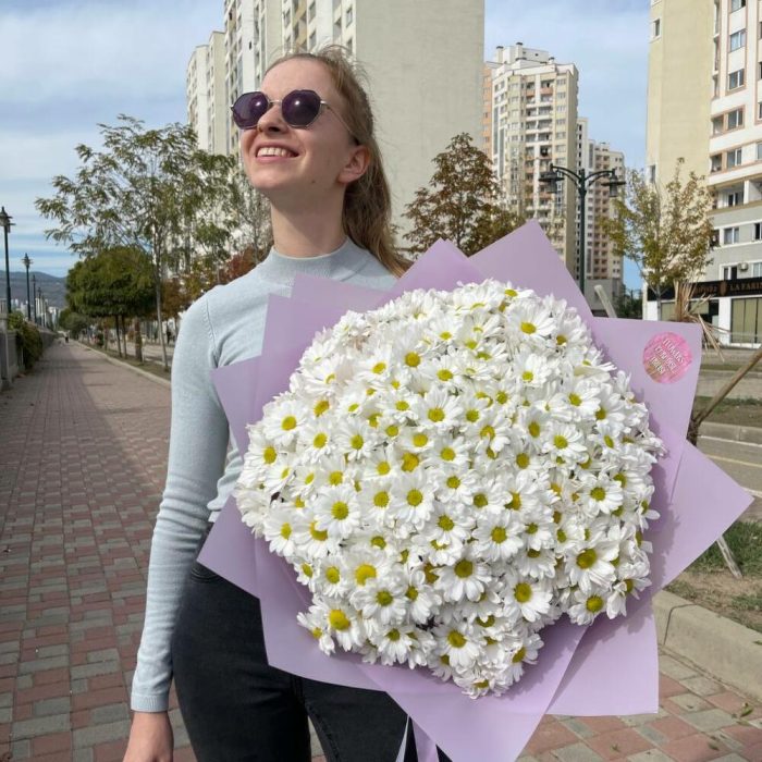 хризантем – 33 шт. Упаковка – 1 шт. Атласная лента – 1 шт.