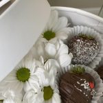 Подарочный набор в коробке, Хризантема и клубника в молочном шоколаде