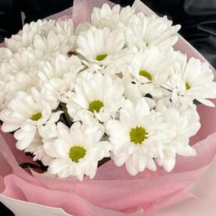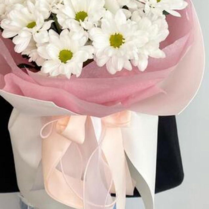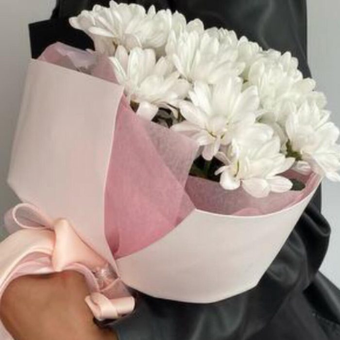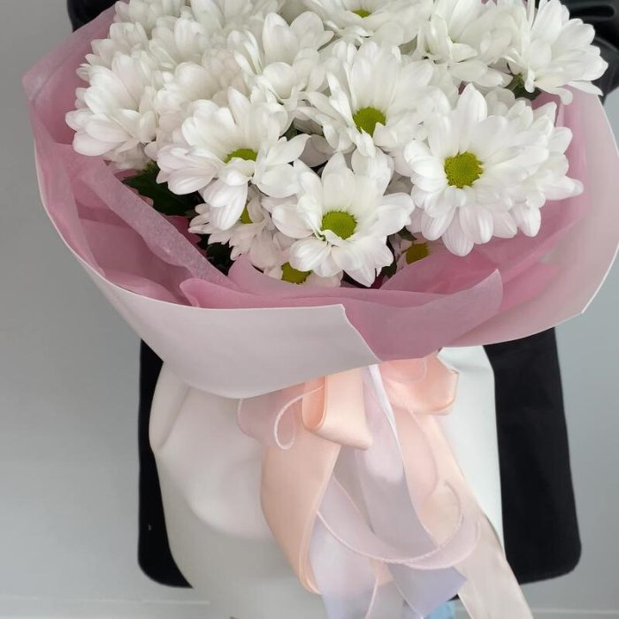 Букет из ромашковых хризантем в стильном дизайнерском оформлении.Уважаемые покупатели! Пожалуйста обратите ваше внимание на размер букета при заказе! Он учитывается вместе с упаковкой Чтобы наши прекрасные букеты дольше радовали получателя рекомендуем вам:⭐Обновить срез букета перед тем, как поставить его в воду⭐Ставить цветы в прохладную проточную воду ⭐Меняйте воду в вазу каждый день⭐Не забывайте подрезать цветы, перед тем, как ставить их в воду⭐Не ставить у отопительных приборов и на сквозняке Фирменный стиль наших букетов разработан специально так, чтобы упаковку не нужно было снимать, так как она придаёт целостность букету и прекрасно держится в вазе