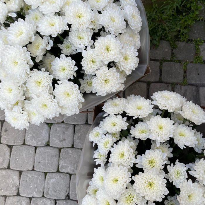 Хризантема кустовая – 9 шт.Лента атласная – 1 шт.Упаковка дизайнерская – 1 шт.Кризал (подкормка) – 1 шт.Аквапак – 1 шт.Транспортировочная коробка – 1 шт.инструкция по уходу за цветами – 1 шт.