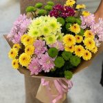 Яркий букет из разноцветных хризантем