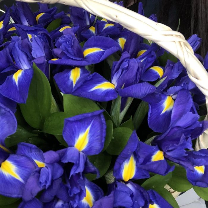 Ирис – 45 шт.Корзина – 1 шт.Оазис флористический – 2 шт.Зелень – 10 шт.