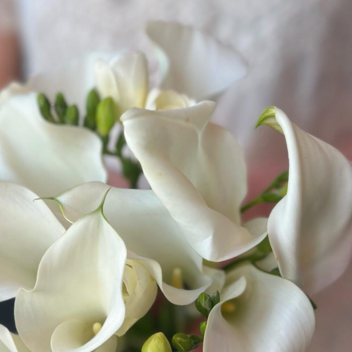 Калла – 11 шт.Фрезия – 4 шт.Атласная лента – 1 шт.