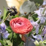 Лилия – 3 шт.Ранункулюс (лютик) – 5 шт.Львиный зев – 5 шт.Дельфиниум – 5 шт.Хедера – 3 шт.лен ветки – 2 шт.Эвкалипт – 7 шт.Лента – 1 шт.