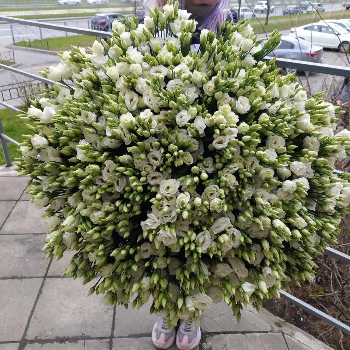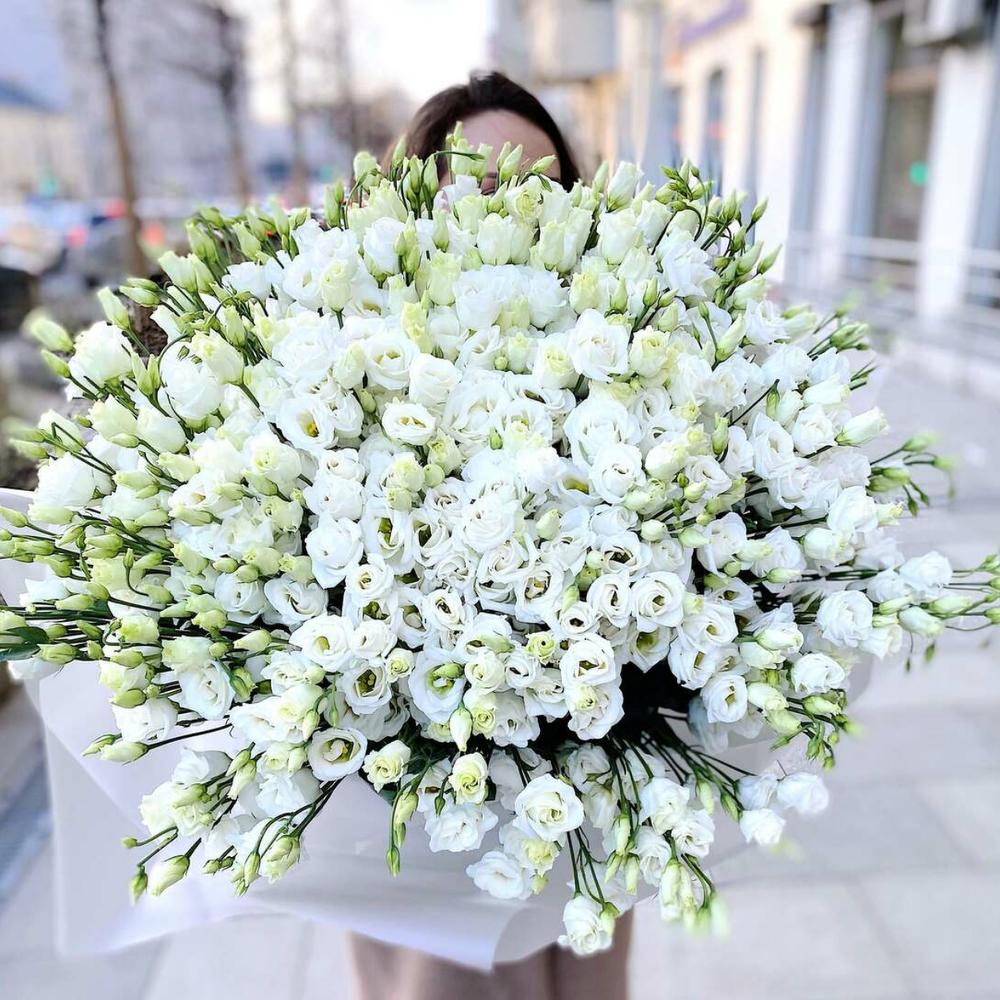 эустома белая – 101 шт.Упаковка – 1 шт.Лента атласная – 1 шт.