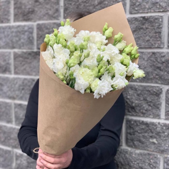 Эустома – 7 шт.Крафт упаковка – 1 шт.бечевка натуральная – 1 шт.