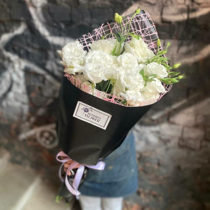 Букет из белой эустомы (лизиантуса) «Белое облако»