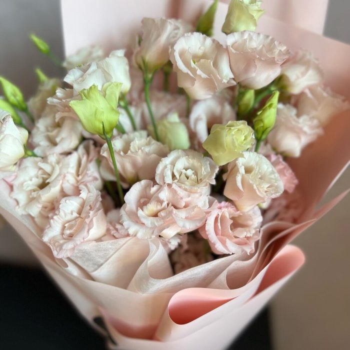 Лизиантус – 11 шт.Упаковка дизайнерская – 1 шт.Лента атласная – 1 шт.