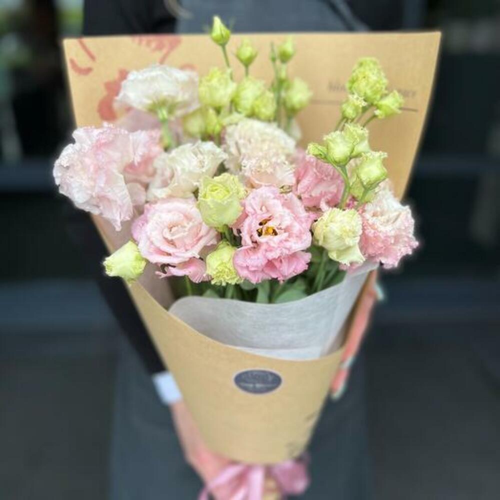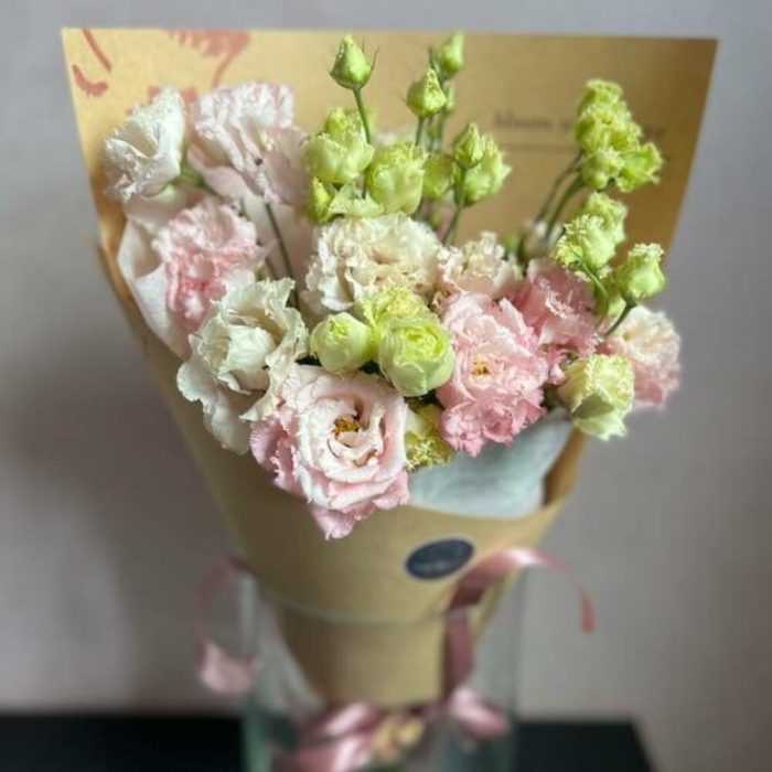 Цветочная композиция с нежными лизиантусами "Леди Роуз"