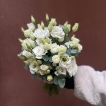 Лента – 1 шт.Лизиантус – 7 шт.Эвкалипт – 3 шт.Самшит – 1 шт.