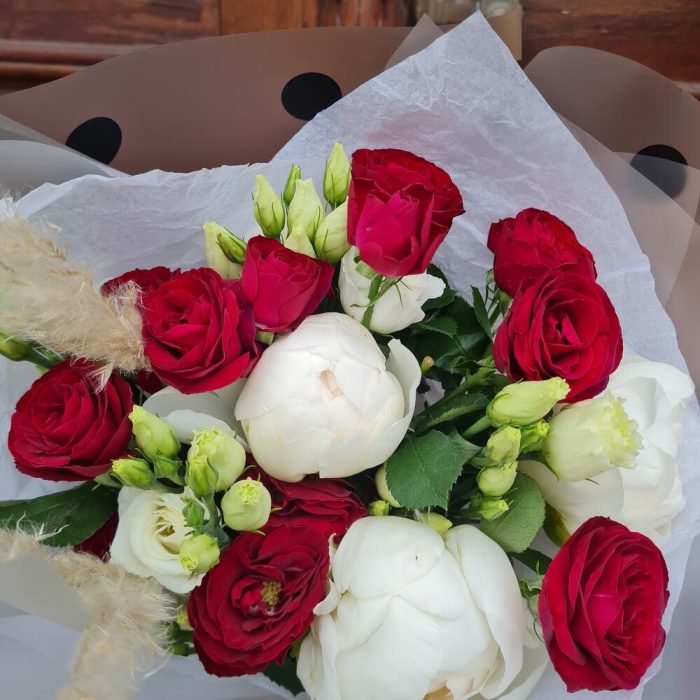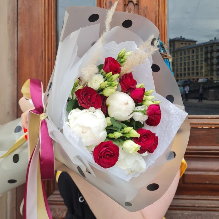 Пион белый – 3 шт.Эустома алиса – 3 шт.марун кустовая – 3 шт.