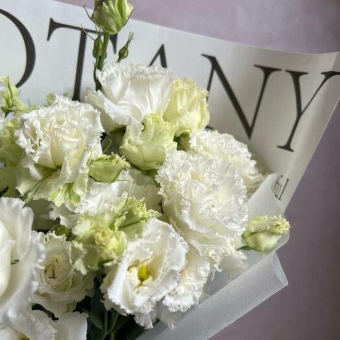 Лизиантус (эустома) – 7 шт.декоративная упаковка – 1 шт.Атласная лента – 1 шт.