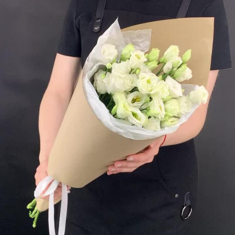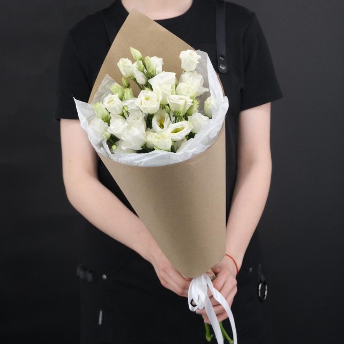 Эустома – 5 шт.Крафтовая упаковка – 1 шт.подкормка для стойкости цветов – 1 шт.