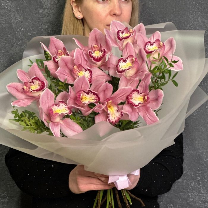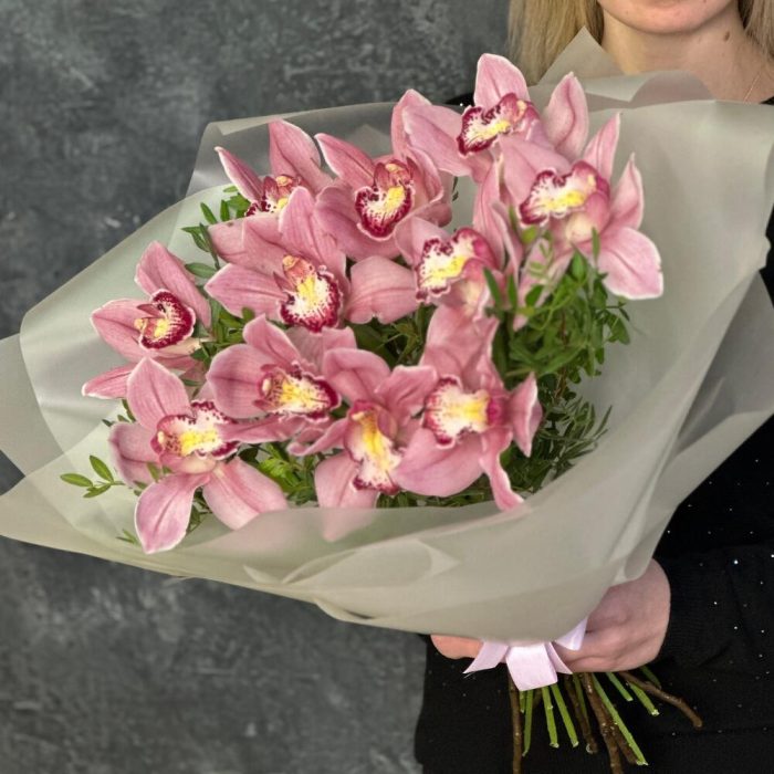 орхидея – 11 шт.Писташ – 5 шт.Стильная упаковка – 1 шт.Лента атласная – 1 шт.