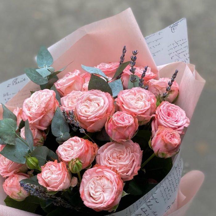 15 кустовых пионовидных роз сильва пинк. Букет 24 KimFlo