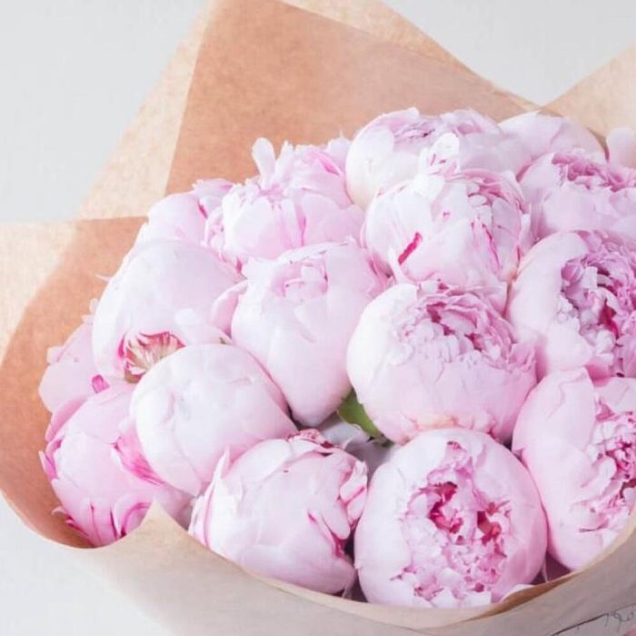 Пион розовый – 17 шт.Упаковка дизайнерская – 2 шт.Лента атласная – 2 шт.Открыточка с вашими пожеланиями – 1 шт.хорошее настроение – 100 шт.инструкция по уходу за цветами – 1 шт.коробка переноска – 1 шт.Кризал – 1 шт.