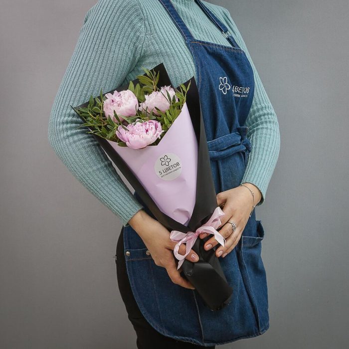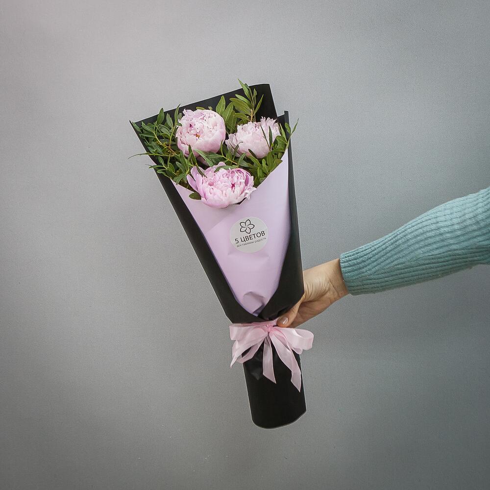 Букет из 3 розовых пионов с фисташкой