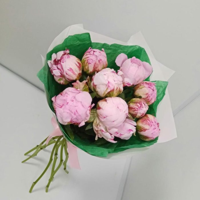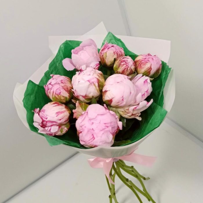 пионы сара бернар – 9 шт.Дизайнерская упаковка – 1 шт.