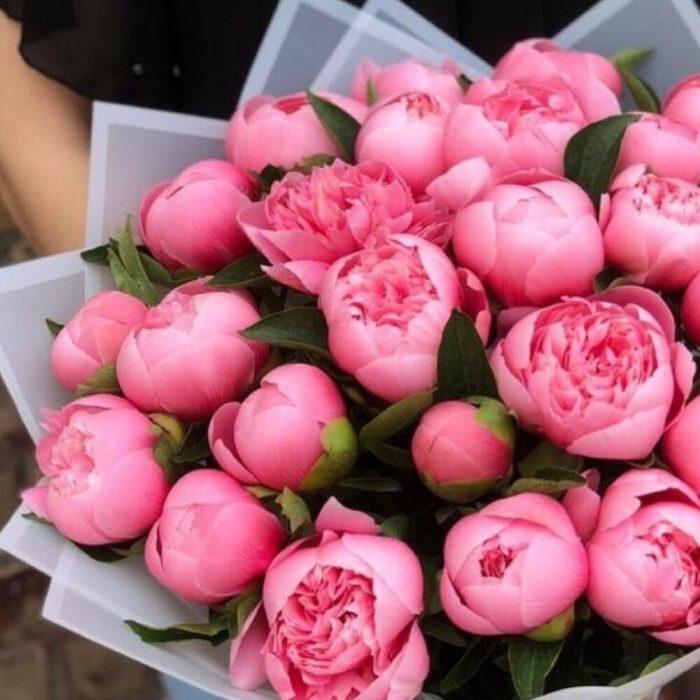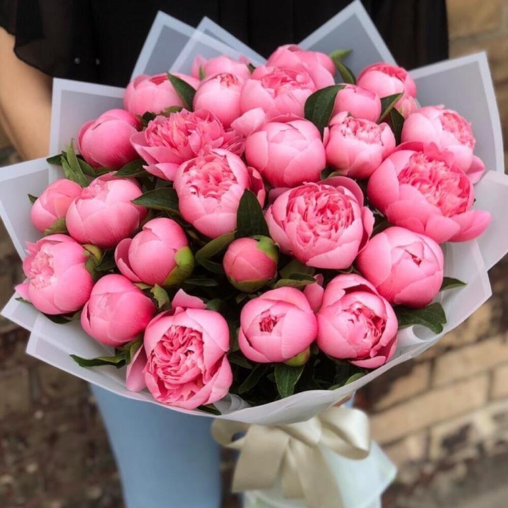 Пион розовый – 29 шт.Упаковка дизайнерская – 1 шт.Лента атласная – 2 шт.Открыточка с вашими пожеланиями – 1 шт.хорошее настроение – 100 шт.инструкция по уходу за цветами – 1 шт.коробка переноска – 1 шт.Кризал – 1 шт.