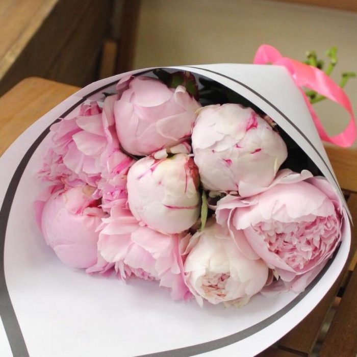 mono bouquet 15 из 9 пионов сорта Sara Bernard