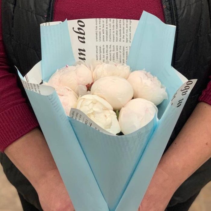 Пион – 7 шт.Упаковка дизайнерская – 1 шт.Лента атласная – 1 шт.