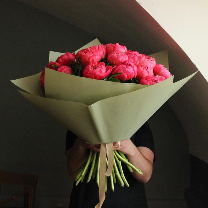 Огромный букет коралловых пионов