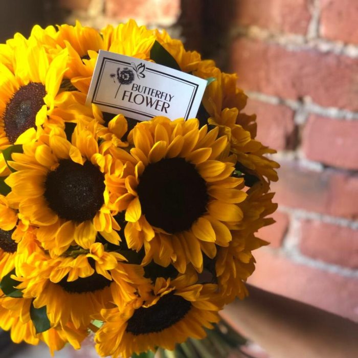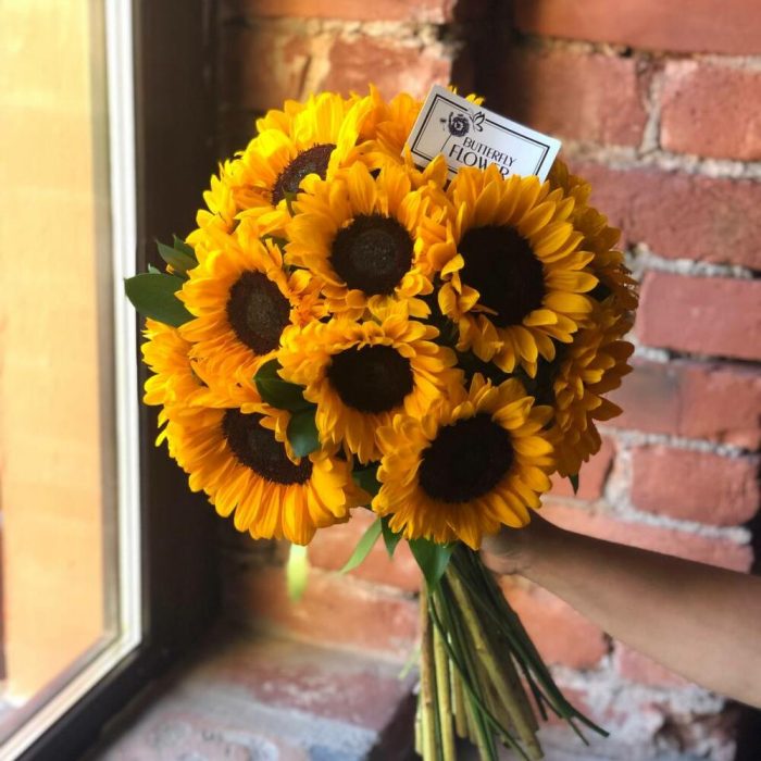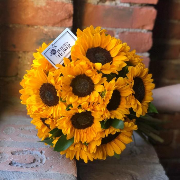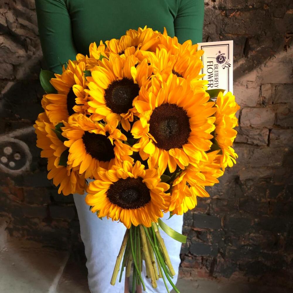 Букет из 17 подсолнухов и рускуса “Роджер Янг”