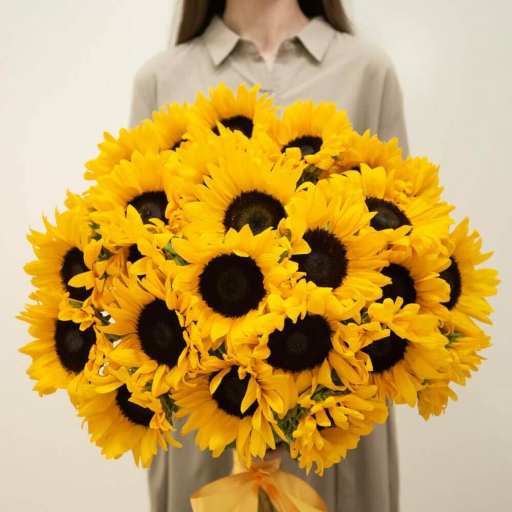 АНАСТАСИЯ солнечный букет из подсолнухов и ромашек