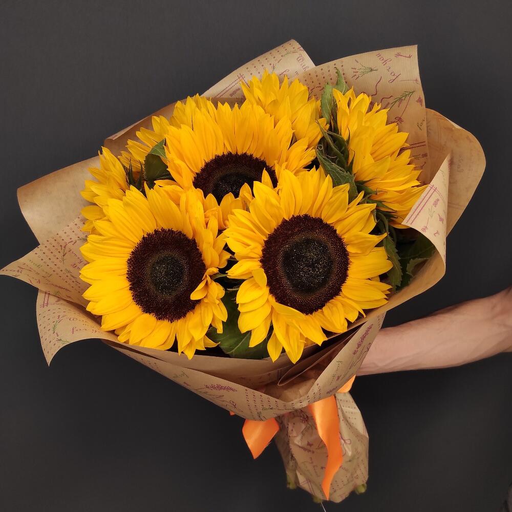 Подсолнух – 7 шт.Крафт – 2 шт.Лента атласная – 1 шт.