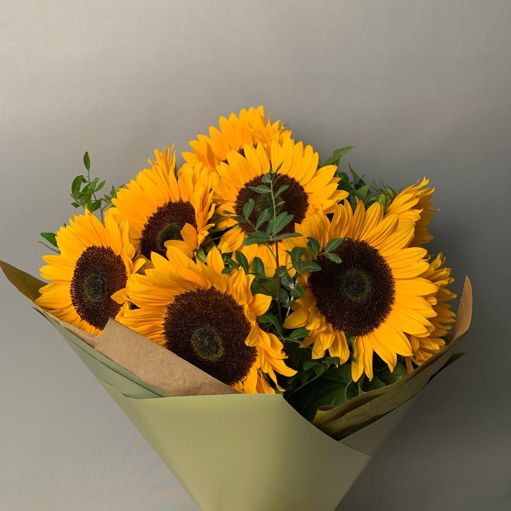 Подсолнух – 9 шт.Фисташка – 3 шт.Упаковка дизайнерская – 2 шт.Лента атласная – 1 шт.