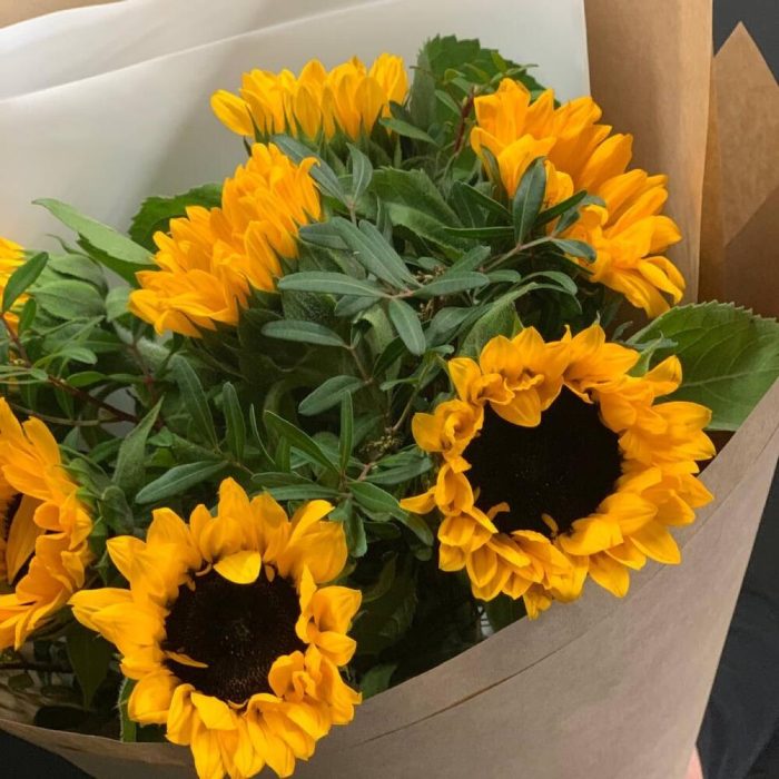 Подсолнух – 7 шт.Фисташка – 3 шт.Упаковка дизайнерская – 2 шт.Лента атласная – 1 шт.