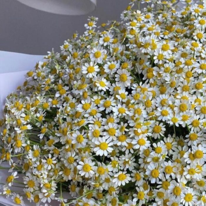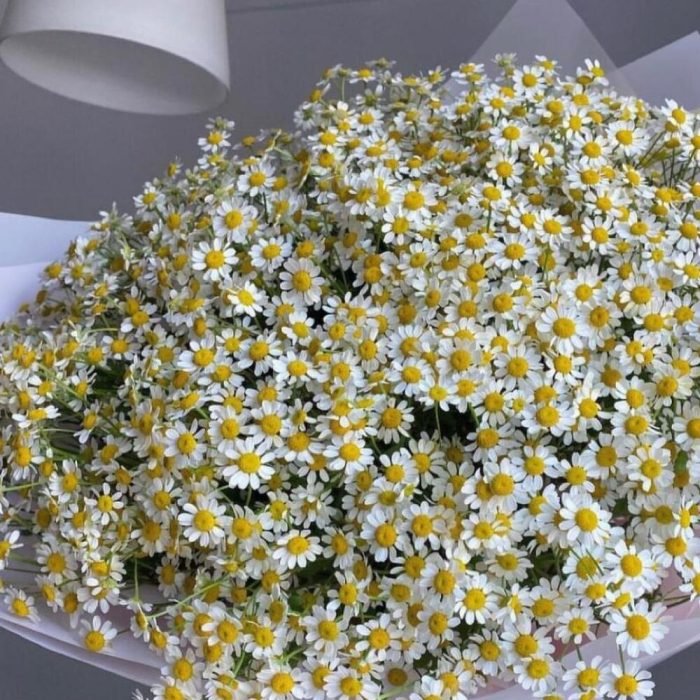 ромашки кустовые – 25 шт.Упаковка дизайнерская – 1 шт.Лента атласная – 2 шт.Открыточка с вашими пожеланиями – 1 шт.хорошее настроение – 100 шт.инструкция по уходу за цветами – 1 шт.коробка переноска – 1 шт.Кризал – 1 шт.