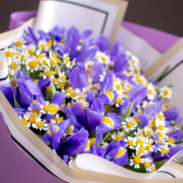 Букет из ирисов и ромашки